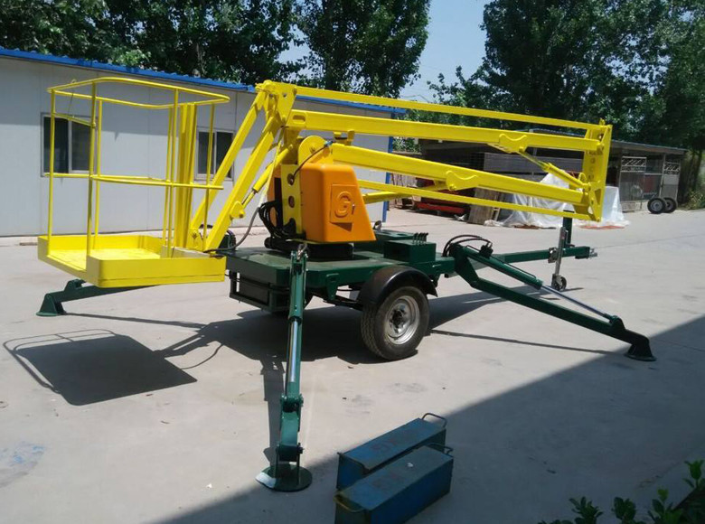 拖車折臂式升降機:可以掛在汽車上,與汽車同步,適合野外高空作業。