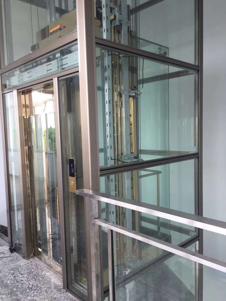 曳引電梯是具有一個轎廂,運行在至少兩列垂直的或傾斜角小于15°的剛性導軌之間,轎廂尺寸與結構型式便于乘客出入,服務于規定樓層的固定式升降設備。