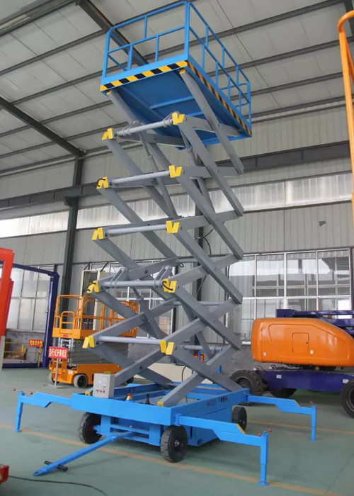 輔助行走移動式升降機無需任何外來動力做牽引,只要操作人員用手扶著轉向桿加速跟著平臺走即可。平臺升降動力有直流24V、36V、48V電源,(可改裝防爆電器)也可改為柴油機做動力,非常適用于短距離移動作業。