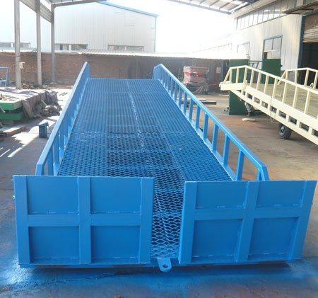 移動式登車橋是與叉車配合使用的貨物裝卸專用輔助設備,有了它叉車能直接從地面駛入汽車車廂內部進行批量裝卸作業。產品采用人工液壓動力,不需接動力電源。只需單人操作,即可實現貨物的安全快速裝卸。它可使企業減少大量勞動力,成倍提高裝卸作業效率,加快貨物流通速度,獲取更大經濟效益。