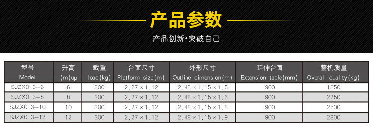 1、 剪叉式主體結構和安全護欄,根據(jù)需要做伸縮臺面