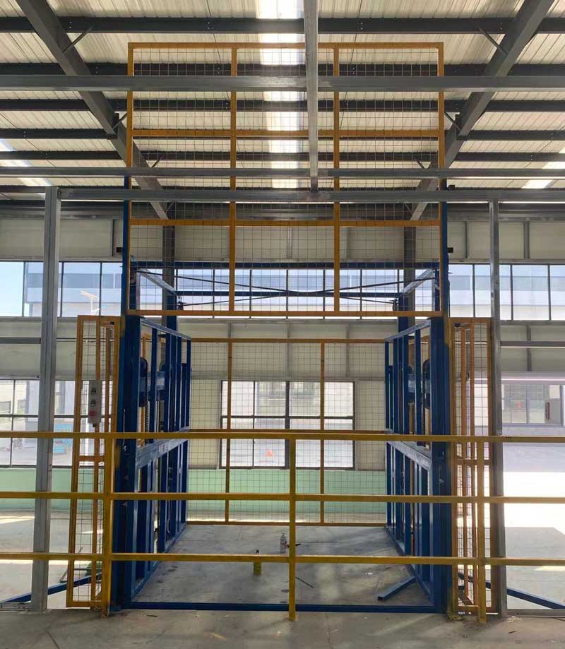 導(dǎo)軌式升降貨梯主體結(jié)構(gòu)使用鋼材焊接而成,故而具有載重量大,強(qiáng)度高,耐磨損等突出優(yōu)點(diǎn);臺(tái)面采用高強(qiáng)度防滑花紋的鋼板,抗壓、耐磨、防滑,使貨物在運(yùn)輸過(guò)程中更穩(wěn)固;導(dǎo)軌采用H型鋼,其抗彎能力強(qiáng)、直線精度高,設(shè)備運(yùn)行更加安全平穩(wěn)。