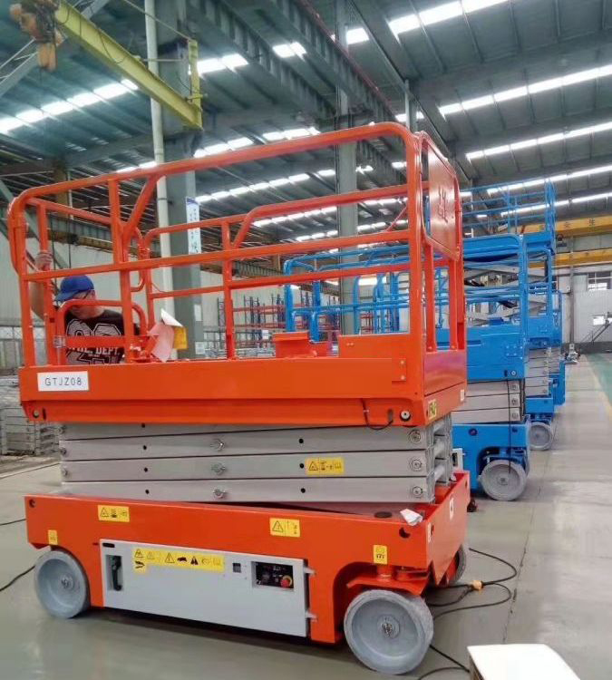 自行式高空作業平臺,它具有自動行走的功能,能夠在不同工作狀態下,快速、慢速行走,只需一個人操作便可在空中連續完成上下、前進、后退、轉向等所有動作。特別適合于機場候機樓、車站、碼頭、商場、體育場館、小區物業、廠礦車間等較大范圍的作業。